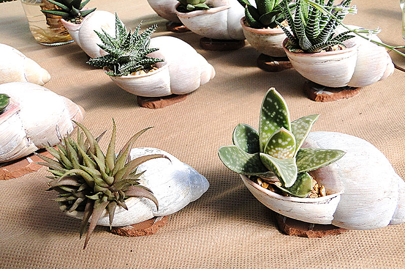Ivoti-conchas com suculentas plantadas